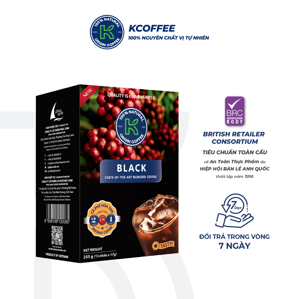 CÀ PHÊ HÒA TAN K BLACK 2 IN 1 255GR - CÀ PHÊ NGUYÊN CHẤT 100% VỊ TỰ NHIÊN