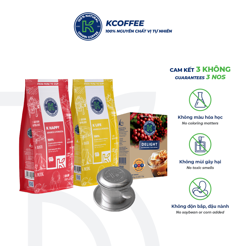 √ K Happy - Dòng cà phê rang xay nguyên chất 100%, thơm ngon, dễ uống, nhẹ nhàng như niềm hạnh phúc, phù hợp cho người có gu thưởng thức cà phê nhẹ