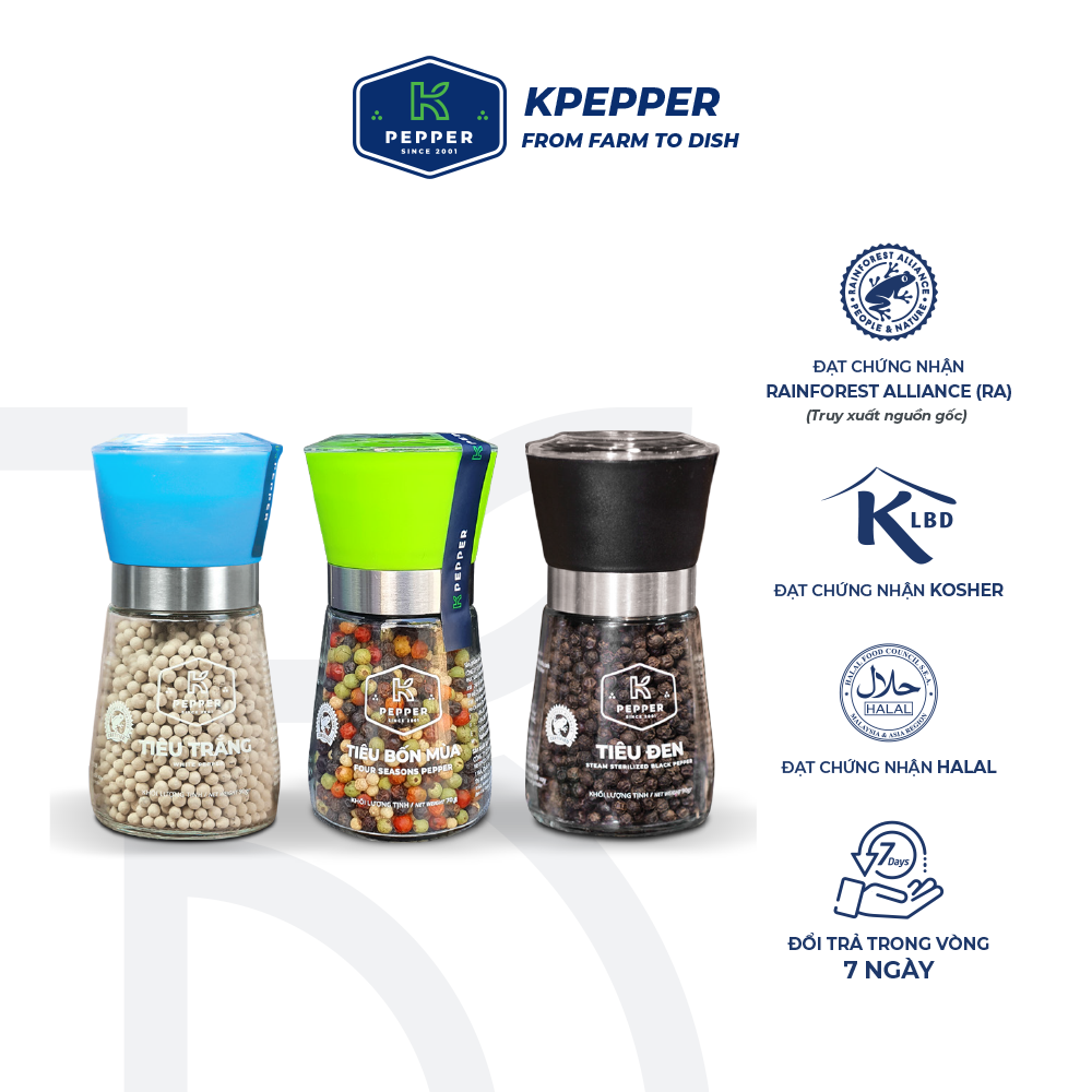 K PEPPER là thương hiệu thuộc Tập đoàn K PHÚC SINH - Tập đoàn Sản xuất, xuất khẩu Cà phê và Hồ tiêu hàng đầu Việt Nam với doanh thu 6.000 tỷ mỗi năm. K PHÚC SINH có quy trình sản xuất khép kín từ vườn, nhà máy đến người tiêu dùng trong nước và quốc tế một chất lượng duy nhất - ONE QUALITY