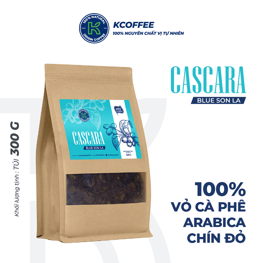 Trà Cascara Blue Sơn La là sản phẩm đặc biệt duy nhất tại Việt Nam được chế biến từ 100% vỏ cà phê Arabica chín đỏ thuộc dòng cao cấp Blue Sơn La Specialty được sàng lọc kỹ lưỡng để chọn ra những vỏ quả đạt tiêu chuẩn cao nhất.