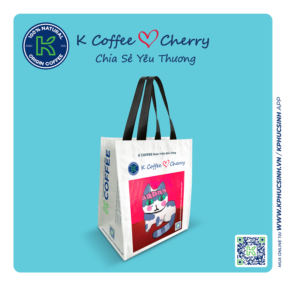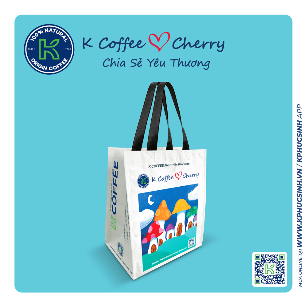 Nằm trong dự án “K COFFEE CHIA SẺ YÊU THƯƠNG”, túi PP dệt K COFFEE ♥️ CHERRY là một tác phẩm đầy tình yêu và sáng tạo. Những bức tranh được in trên túi đều được vẽ bởi cô bé Cherry 9 tuổi.Với đam mê và năng khiếu hội hoạ, Cherry đã tái hiện những khoảnh khắc cuộc sống một cách sống động và đầy màu sắc.